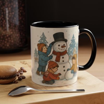Enjoy every sip with this adorable mug featuring kids building a snowman. Perfect for hot cocoa, coffee, and holiday gifting.