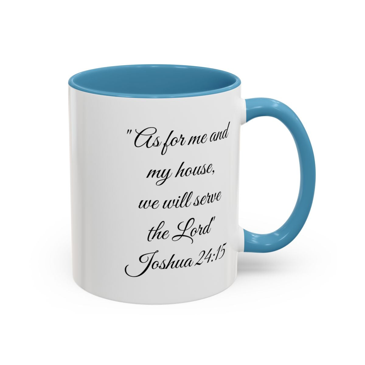 This Inspirational Accent Coffee Mug with Joshua 24:15, "As for me and my house, we will serve the Lord," design is perfect for your morning coffee routine. Start your day with a positive message and a pop of color. Ideal for anyone looking to add motivation to their daily life or seeking a thoughtful gift for a religious celebration.